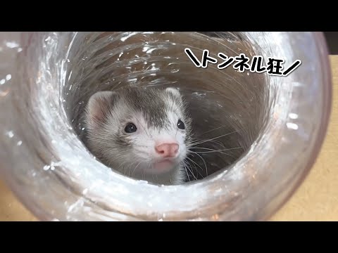 Ferrets raging in a tunnel where they can only play for 5 minutes every day